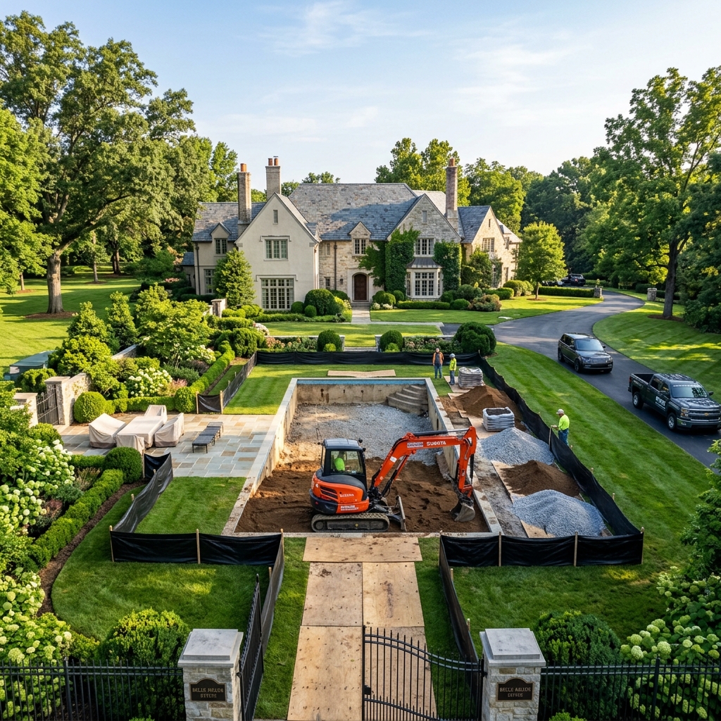We work alongside arborists to ensure heavy machinery never compacts the root zones of historic Belle Meade oaks.